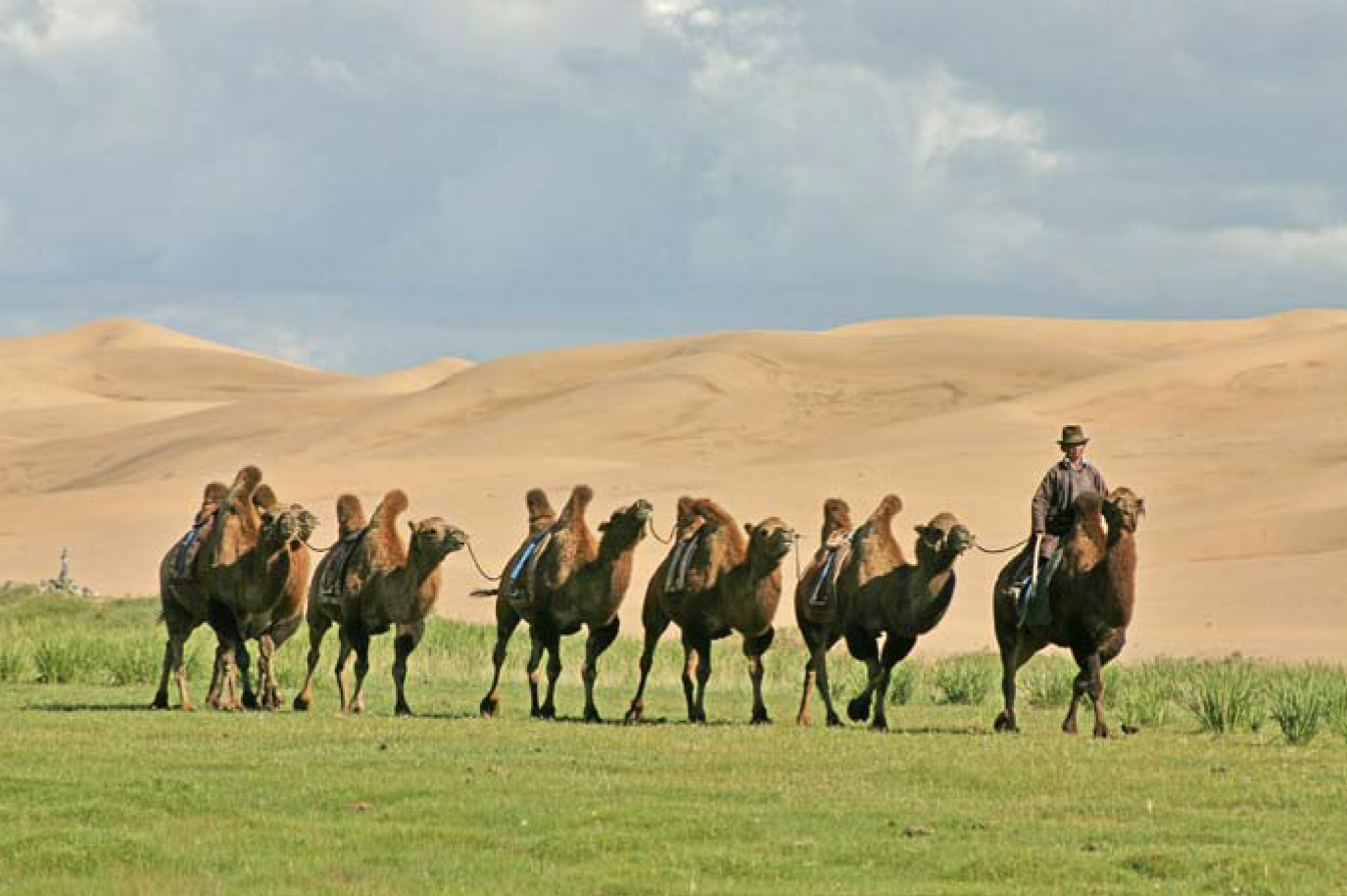 We begin our four day camel trek at the ger camp and travel first to Adag Lake near the sand dunes. From here we continue to Chono Shurguul – a grove of trees in the middle of the vast desert terrain. As we travel through the remote and unspoiled area, we will see several sites of interest including sand dunes, a hidden valley of Saxaul trees, and nomadic families. On day 8 we conclude our trek in the Sevrei Mountain range and enjoy some free time for hiking or relaxing. Overnight in tents (B, L, D)