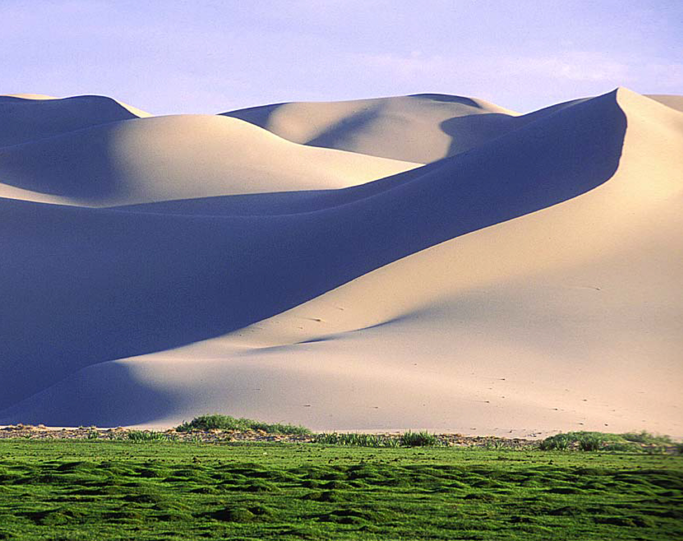 reaching heights of approximately 800 meters and known locally as the “singing dunes” because the sands produce an eerie rumbling sound as they shift slowly in the wind. Overnight in ger camp close to the dunes (B, L, D)